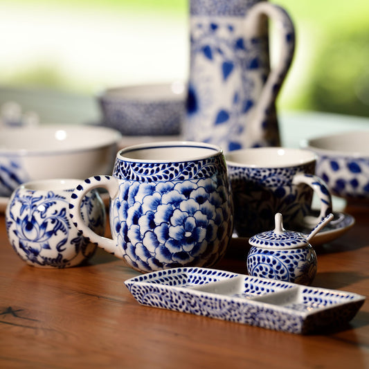 Vassoio con tre vasetti portasalse Peonia ceramica