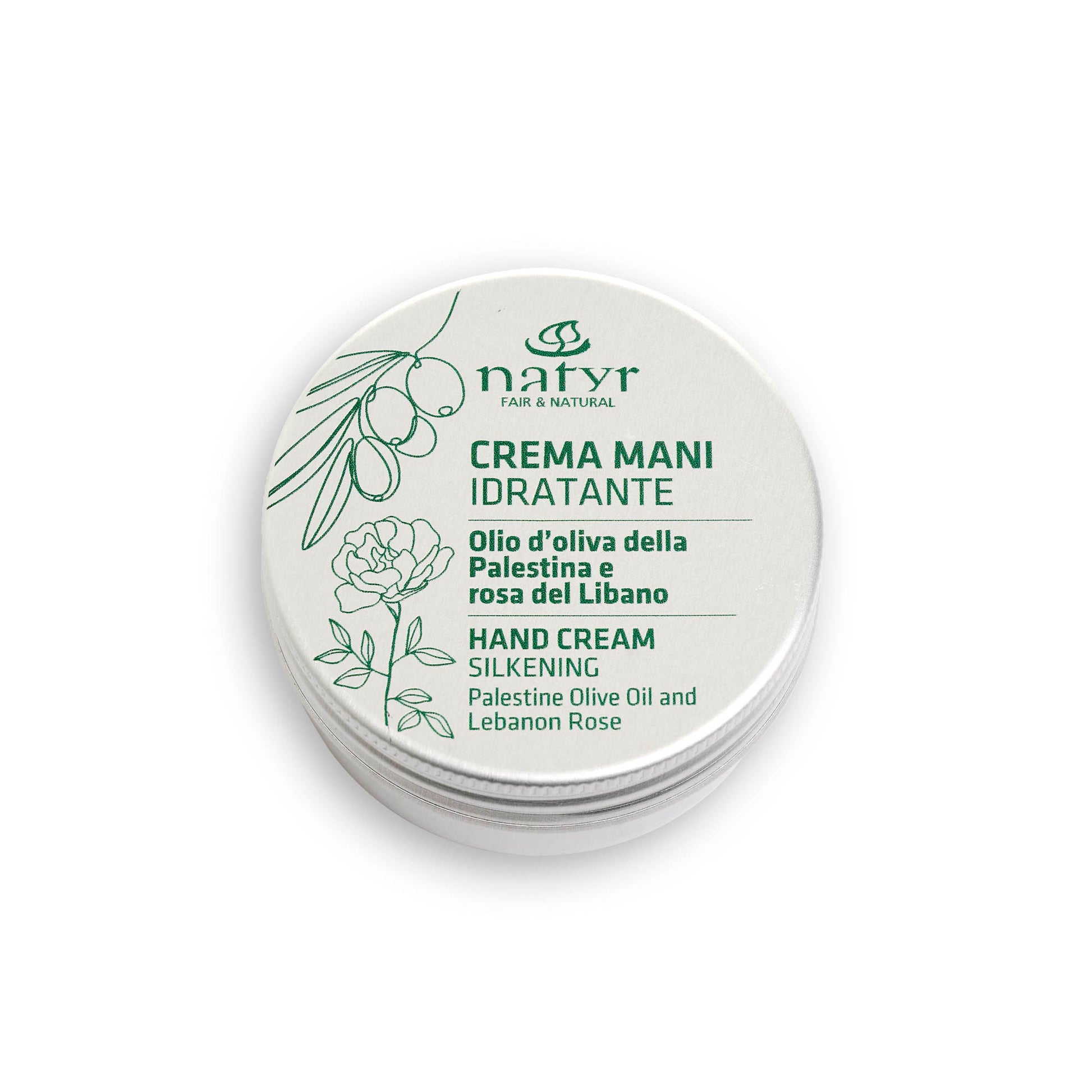 Crema mani idratante con olio d'oliva della Palestina e rosa del Libano | 50 ml