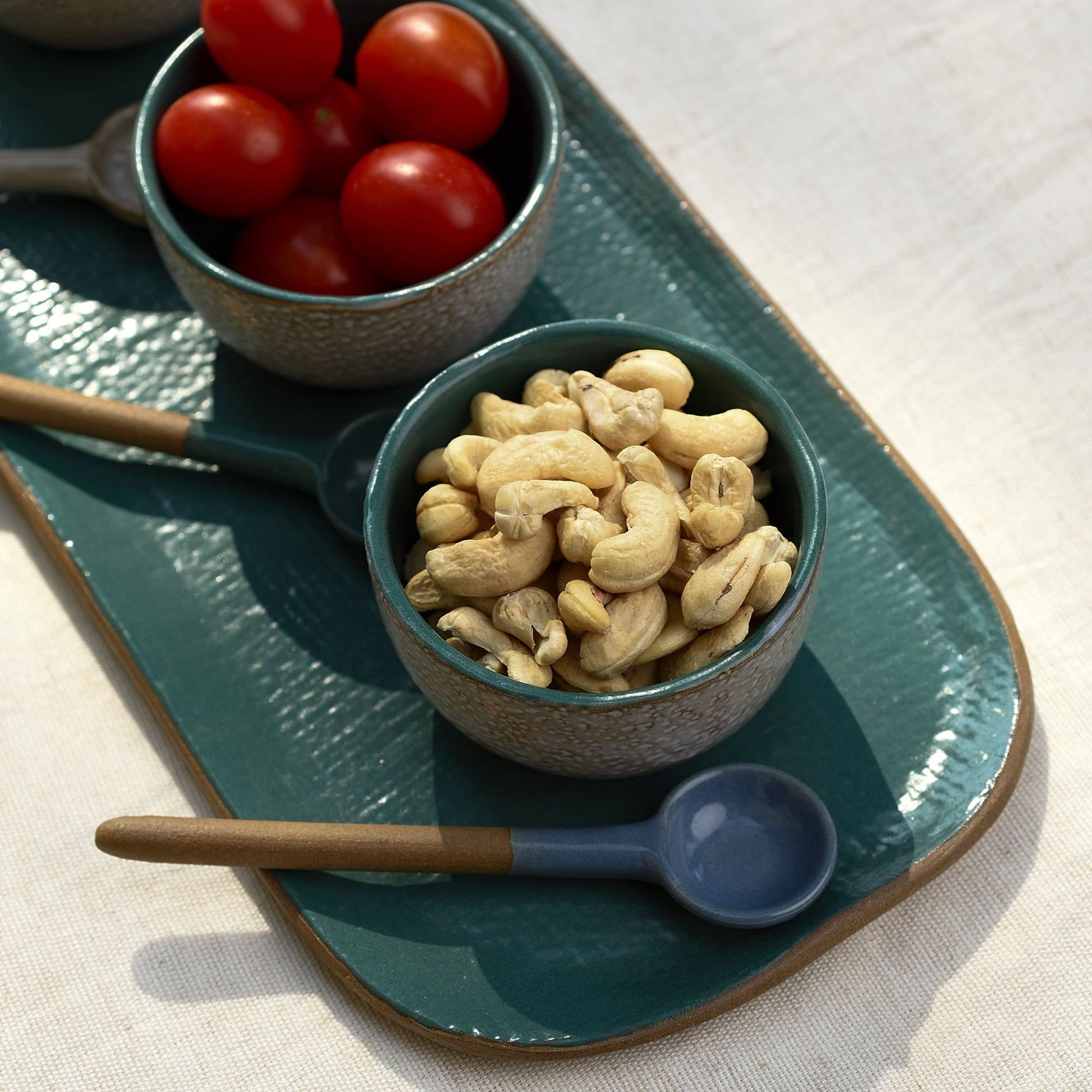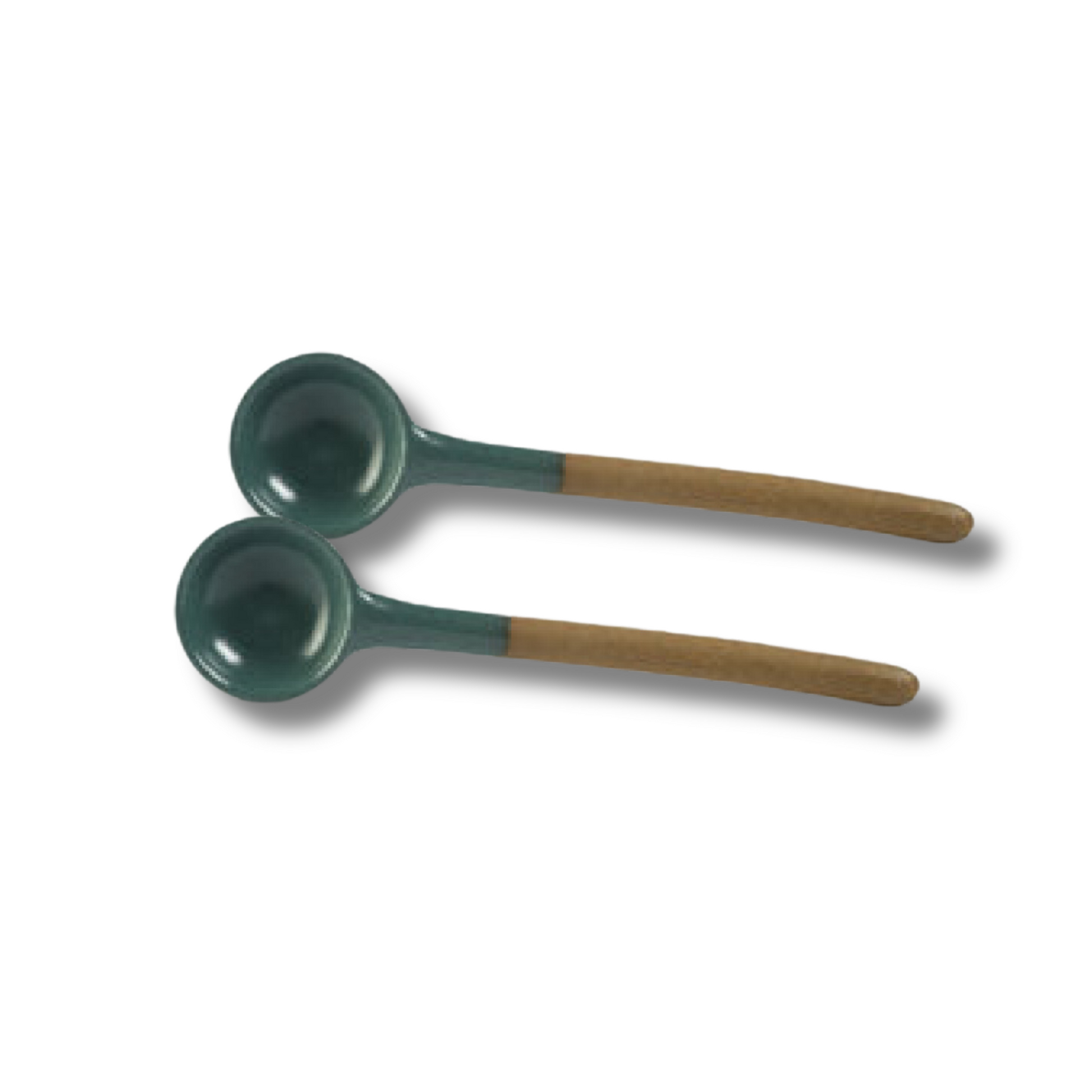 Coppia di cucchiaini texture in gres verde realizzati a mano in Nepal.