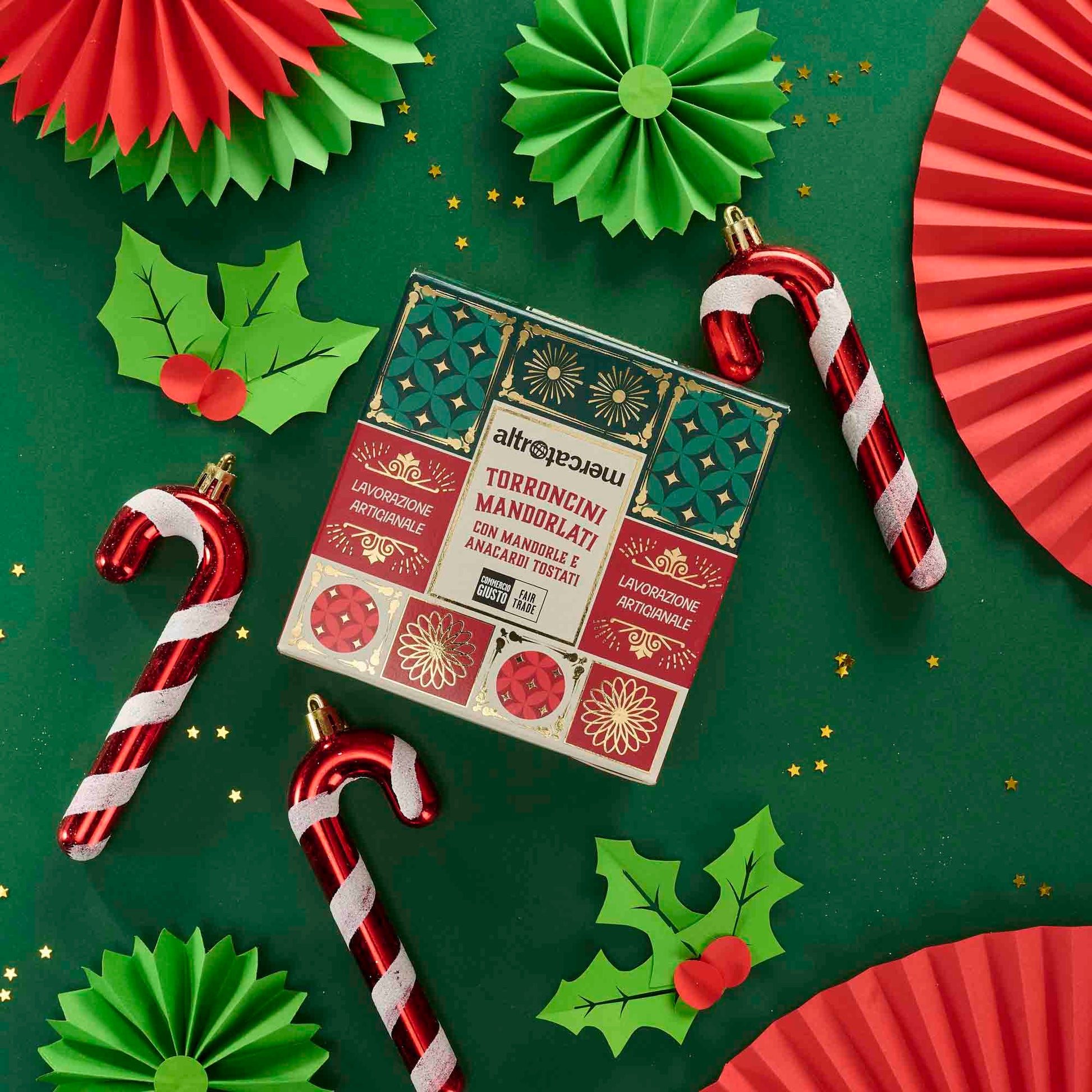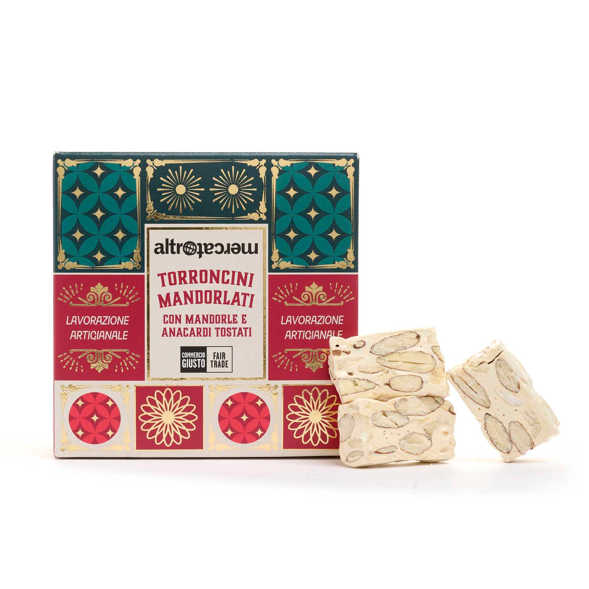 Un assaggio di tradizione: i torroncini mandorlati Altromercato con miele, mandorle e anacardi tostati sono fragranti dolcetti realizzati con ingredienti che rispettano il mondo e lavorazioni che seguono la tradizione torroniera dei maestri di Cologna Veneta.