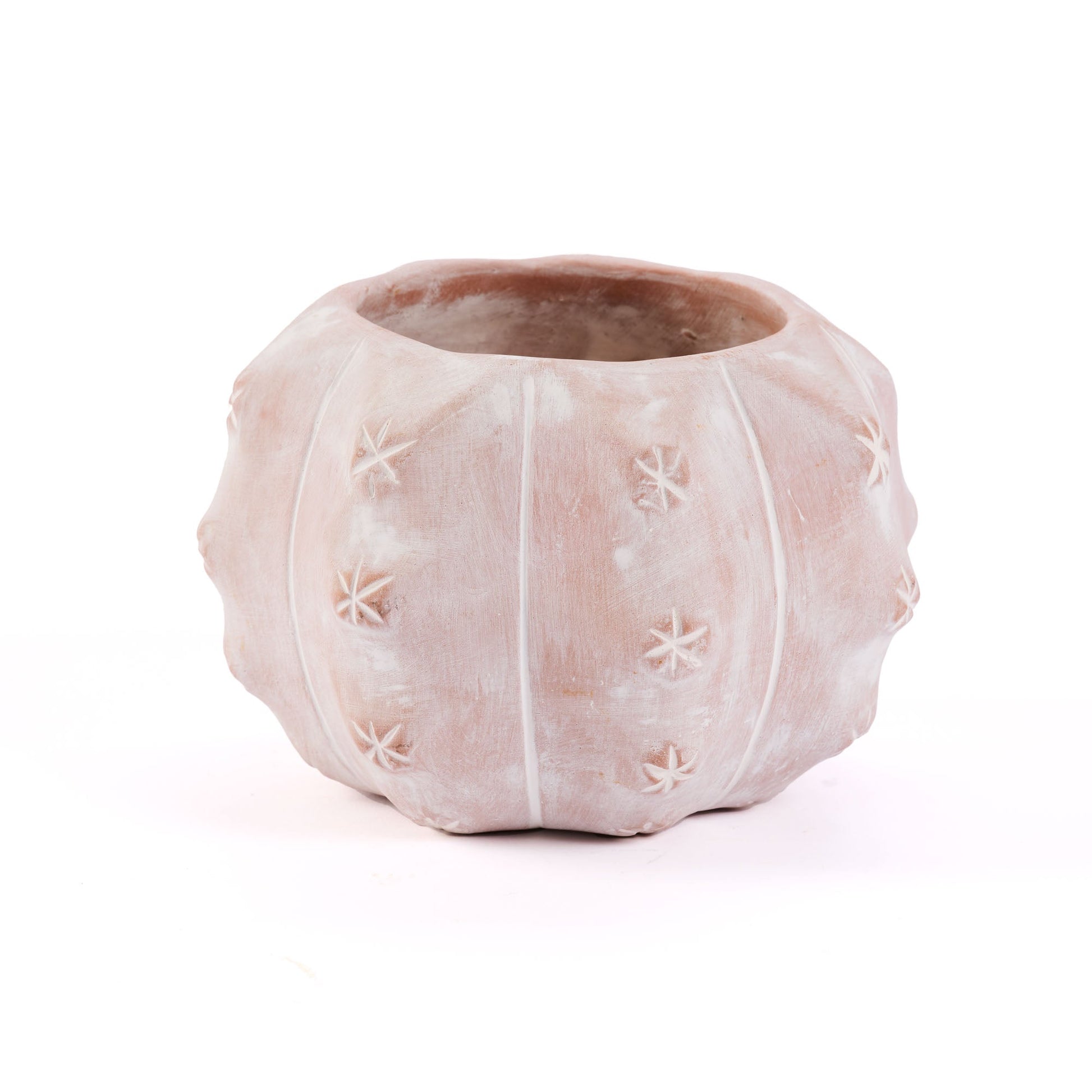 Un simpatico oggetto artigianale realizzato con finitura bianca sfumata, ornato da un motivo inciso o a rilievo che lo rende particolare e decorativo. Perfetto per contenere una pianta grassa, è anche un vero e proprio elemento di arredo che renderà unico il vostro angolo verde. Avvertenza: se irrigati in ambiente interno, aver cura di mettere un sottovaso per evitare l’eventuale trasudamento di umidità su mobili o pavimenti.